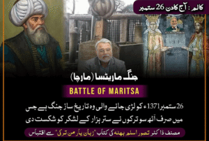 آج کا دن جنگ ماریٹسا(مرچا) Battle of Maritsa 26 ستمبر 1371ء کو لڑی جانے والی وہ تاریخ ساز جنگ ہے جس میں صرف آٹھ سو